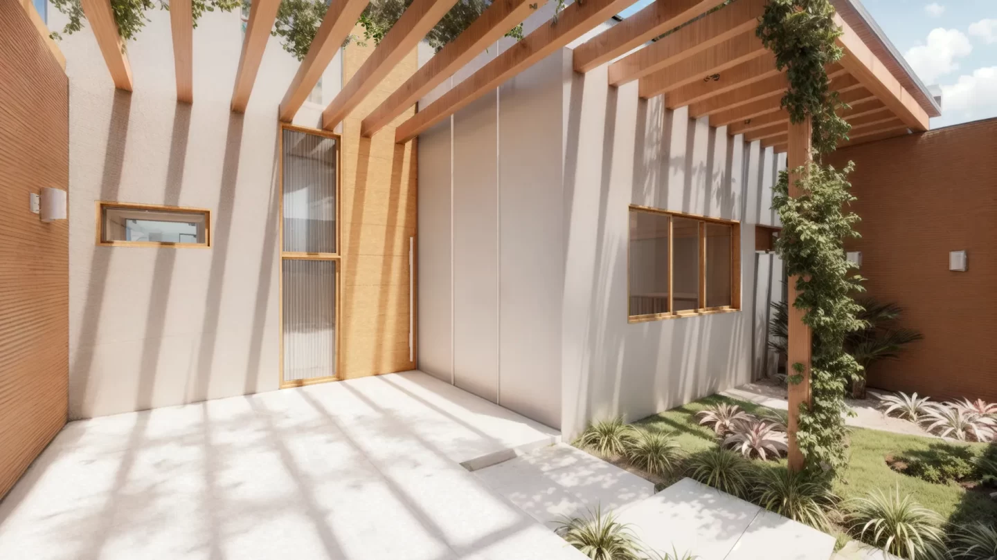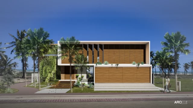 - Movimento Visual: A volumetria da casa utiliza diferentes planos e alturas, proporcionando um movimento visual que destaca a elegância do projeto.