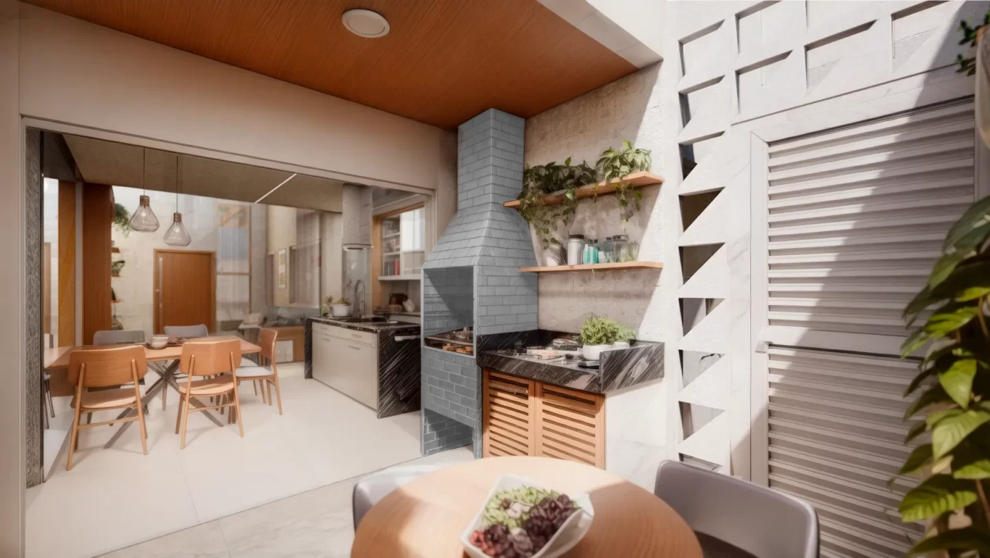 - Espaço Gourmet: A área gourmet, localizada nos fundos da casa, é conectada à área interna através de uma generosa porta de vidro, promovendo integração e proporcionando um ambiente perfeito para o convívio familiar e social, um desejo especial da família.