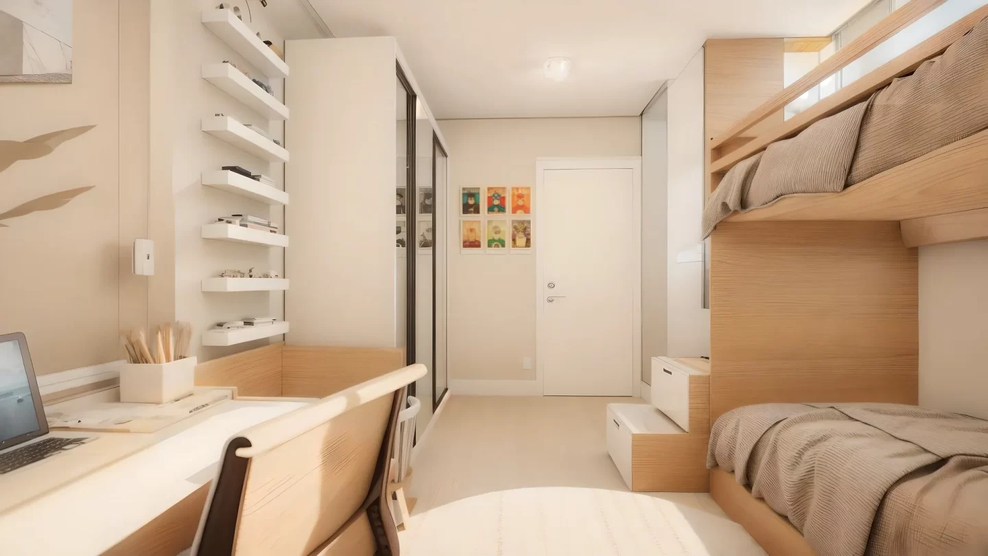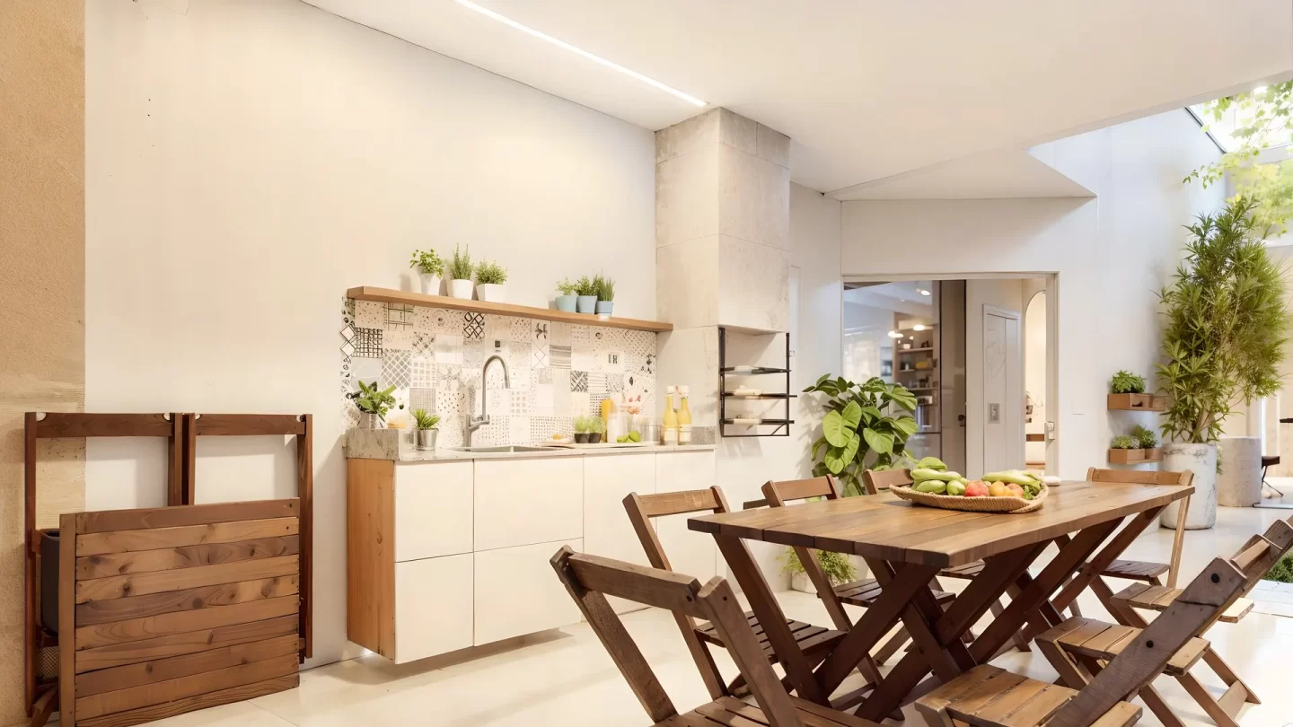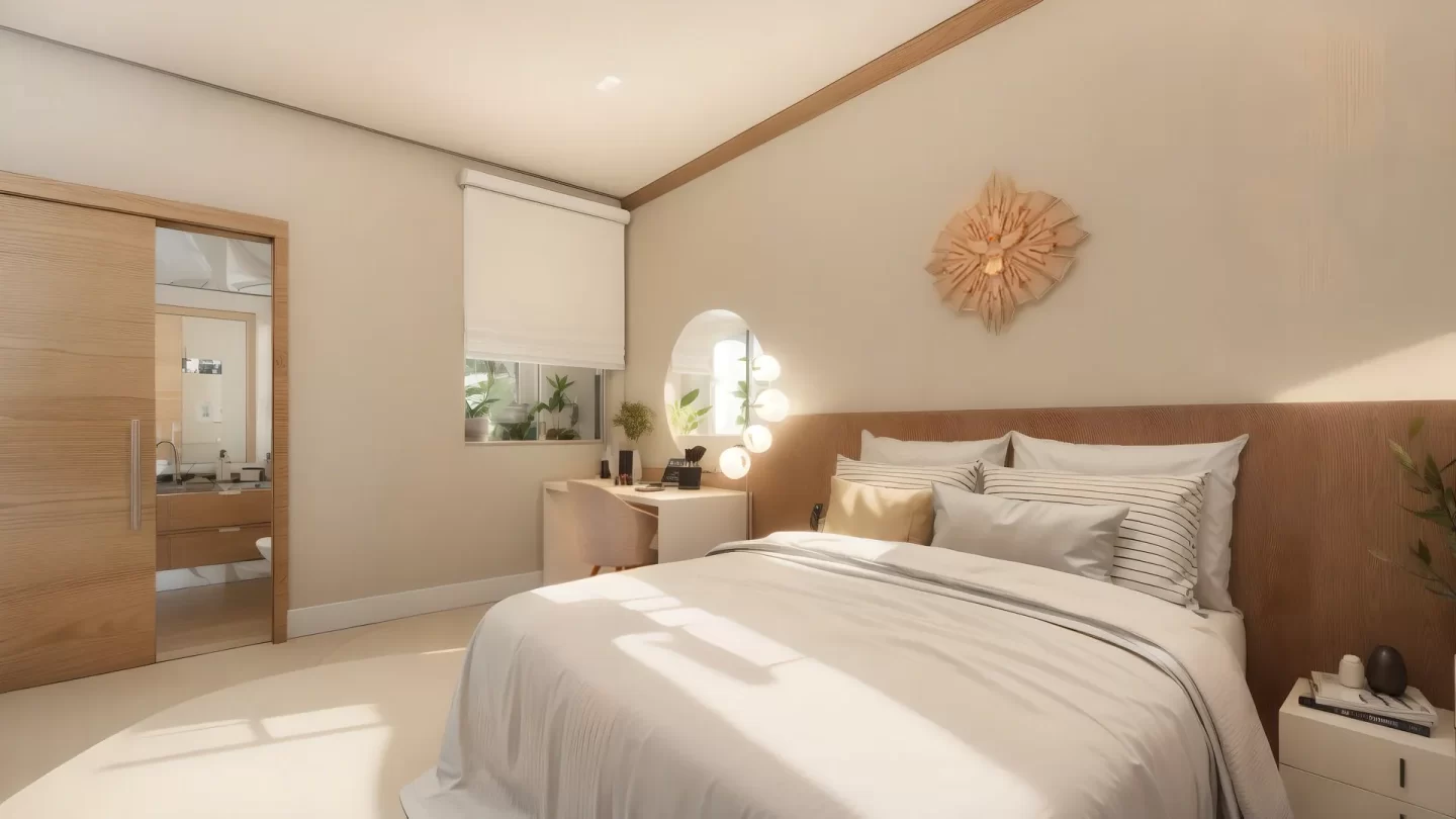 - Integração de Sala e Cozinha: Com tons neutros e uma disposição que favorece a convivência, os espaços foram integrados de maneira harmoniosa, criando um ambiente acolhedor e elegante.
