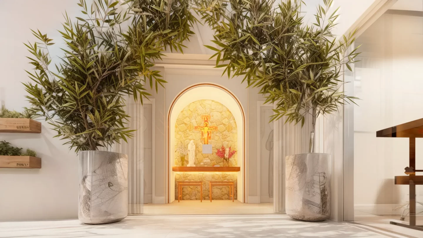 - Oratório Personalizado: Um cantinho dedicado à fé da família, projetado com carinho e respeito, para ser um espaço de oração e reflexão dentro de casa.