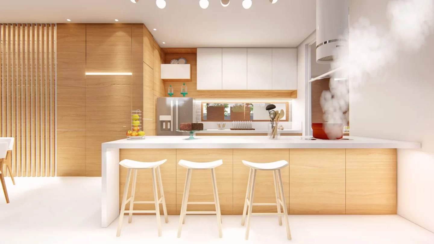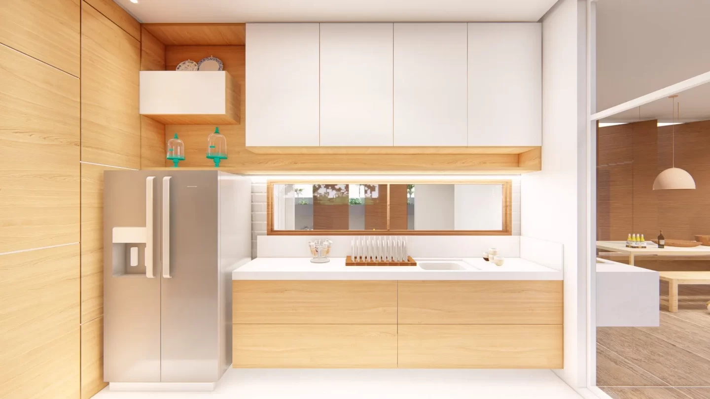 Este projeto foi desenvolvido para uma família que gosta de ambientes neutros, utilizando uma paleta de cor clean e abusando do amadeirado para trazer aconchego.