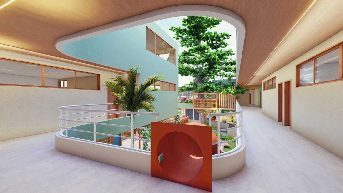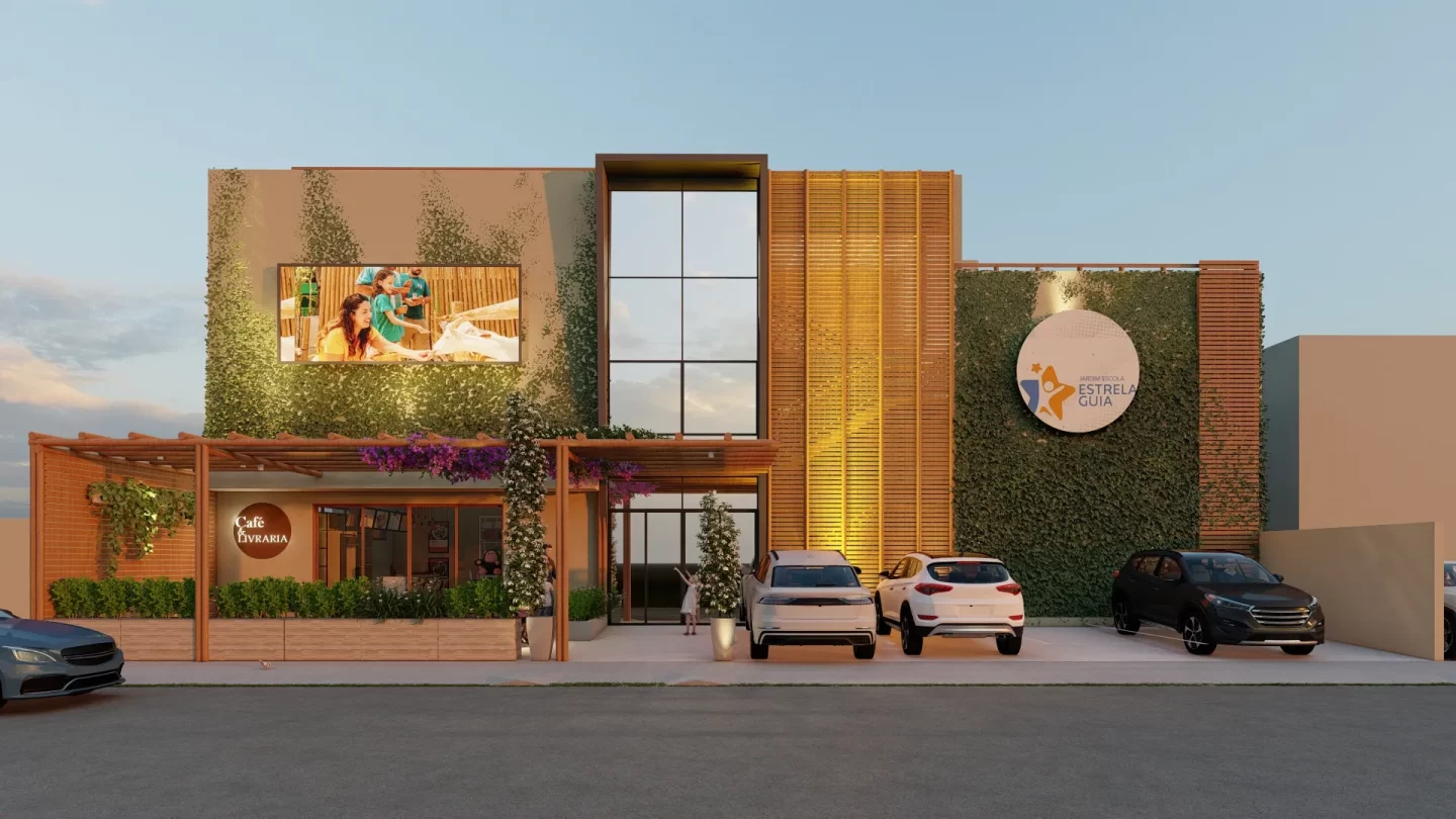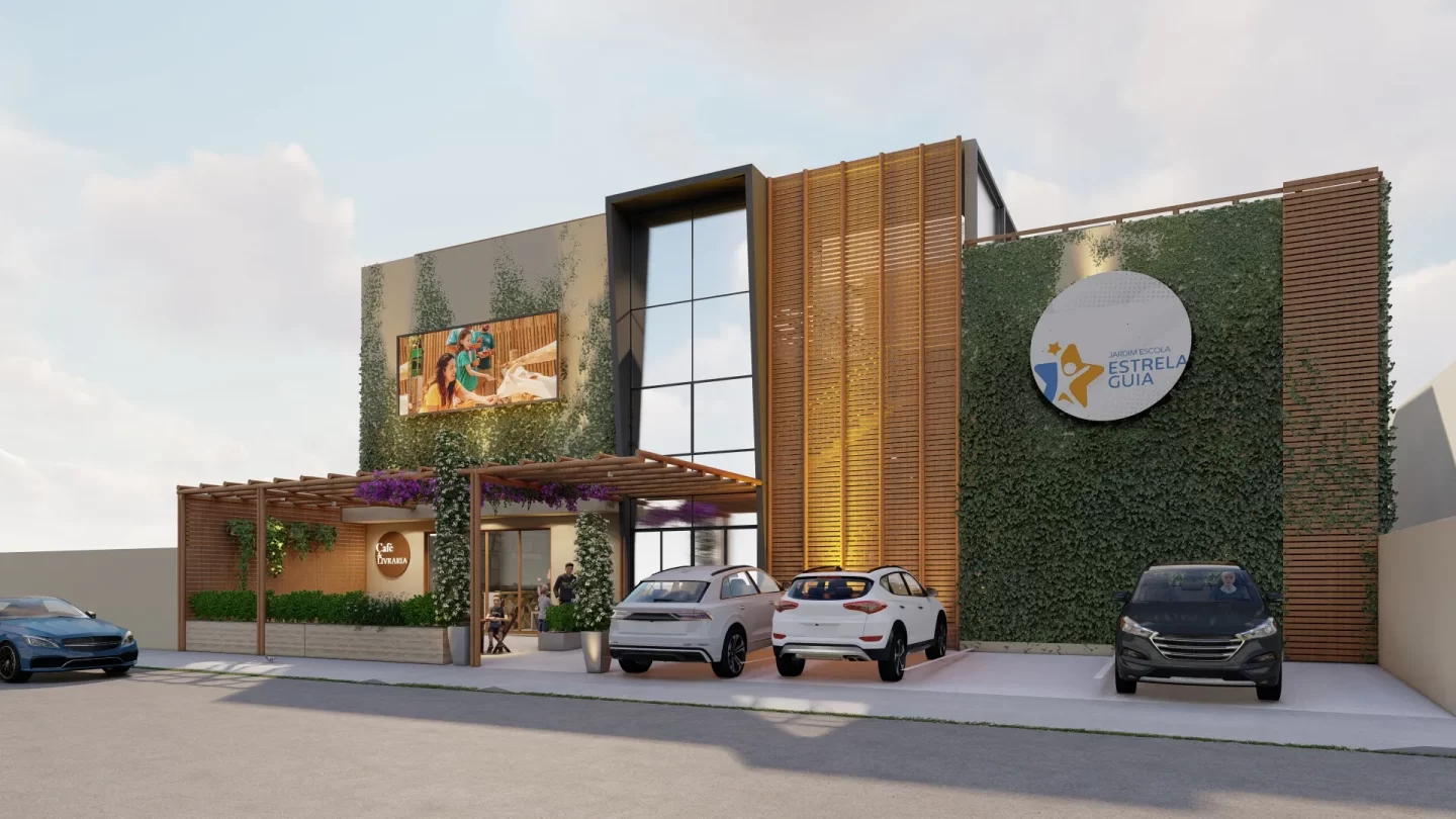 O Colégio Estrela Guia foi concebido com uma arquitetura contemporânea e sustentável, priorizando o bem-estar e a integração com a natureza. O projeto busca proporcionar um ambiente educativo inovador, com espaços amplos, abertos e interligados, promovendo uma experiência de aprendizado mais fluida e estimulante.