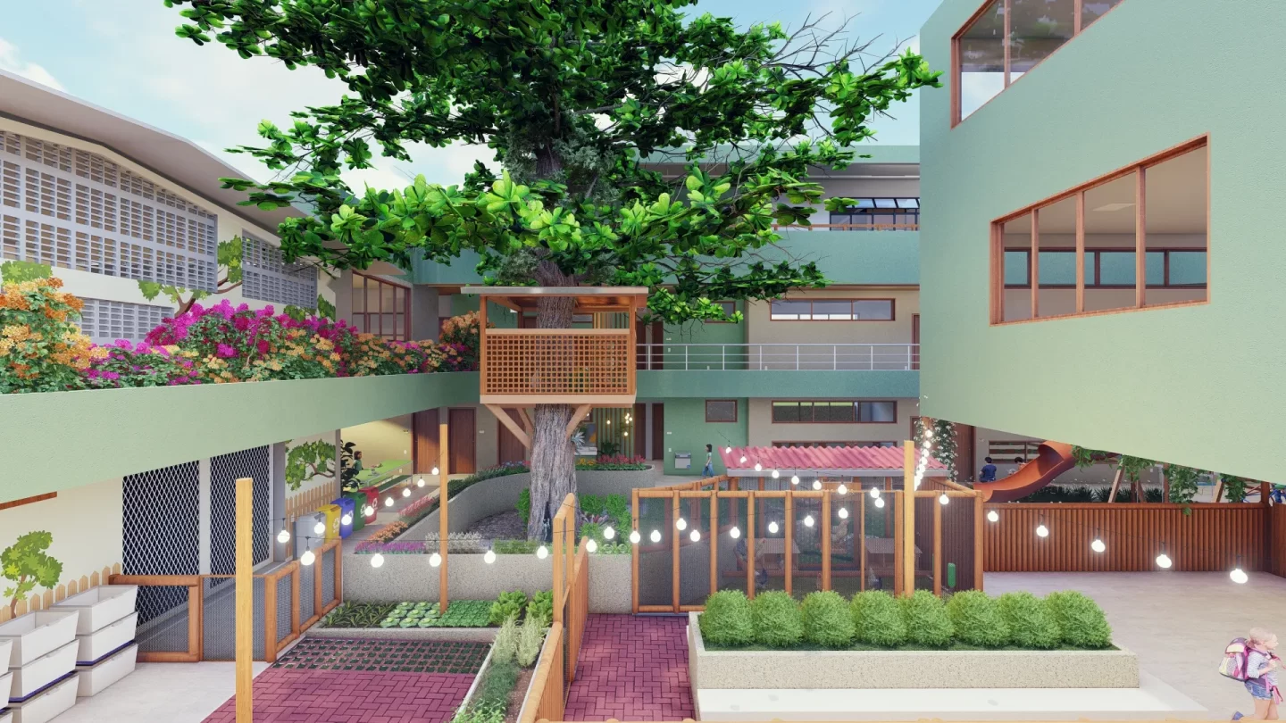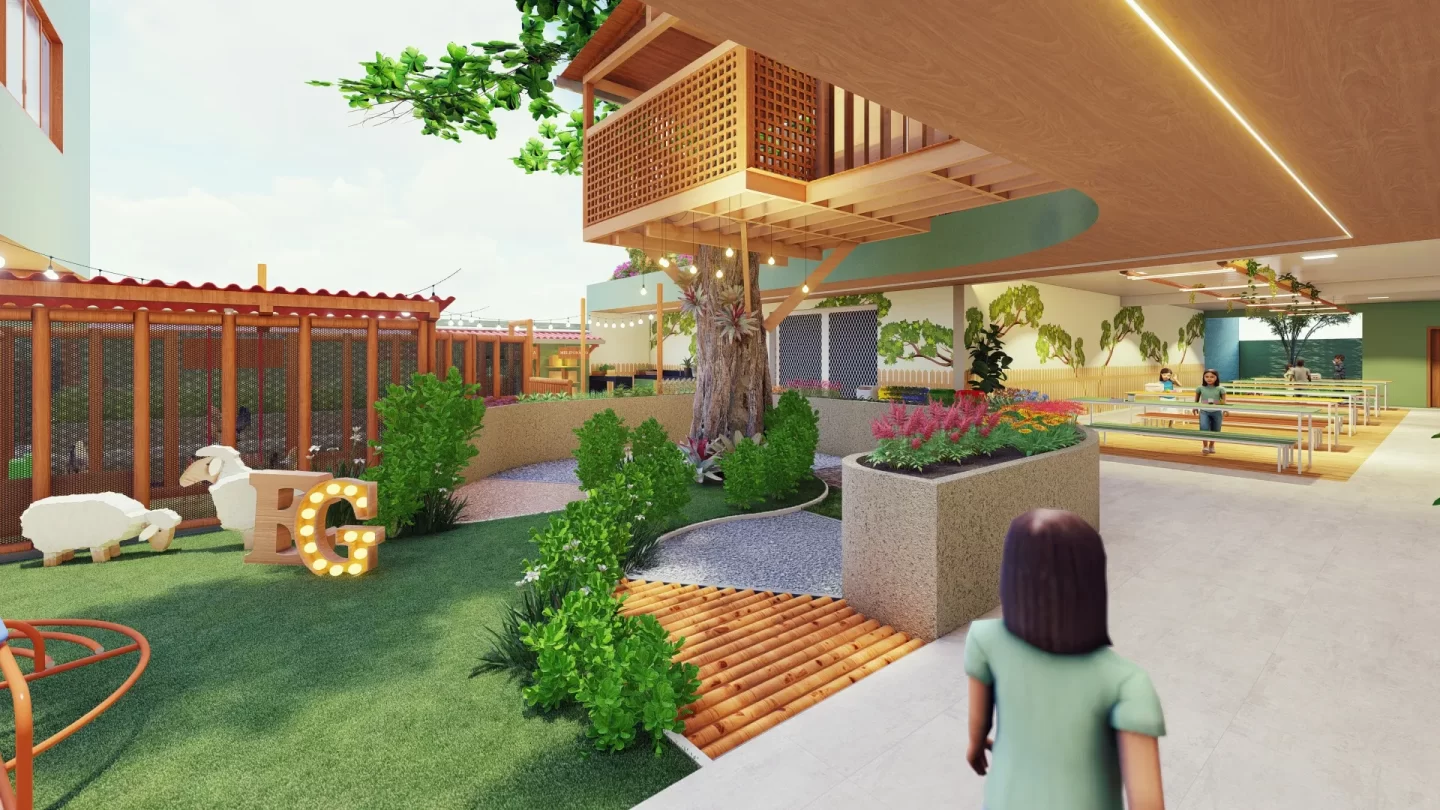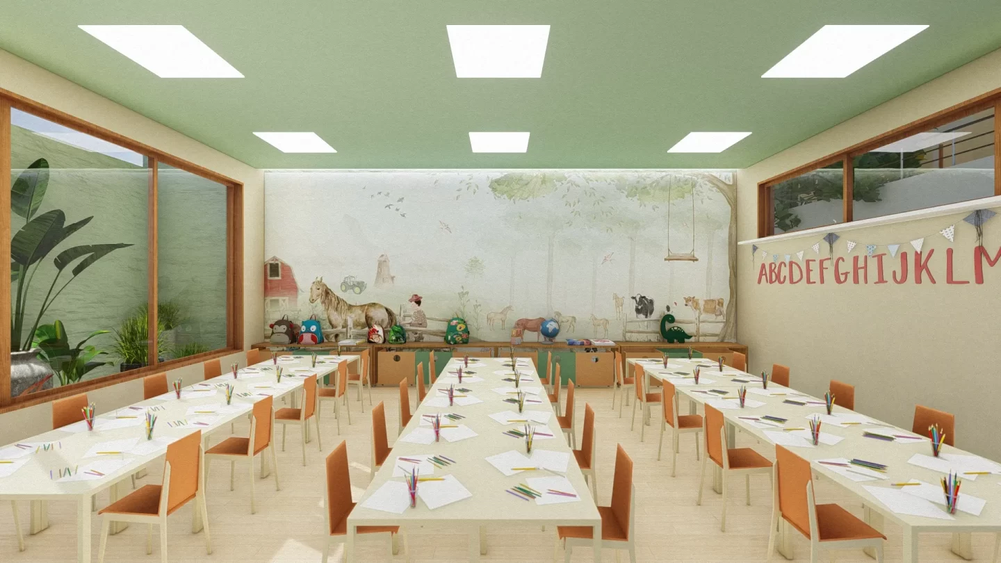 O Colégio Estrela Guia foi concebido com uma arquitetura contemporânea e sustentável, priorizando o bem-estar e a integração com a natureza. O projeto busca proporcionar um ambiente educativo inovador, com espaços amplos, abertos e interligados, promovendo uma experiência de aprendizado mais fluida e estimulante.