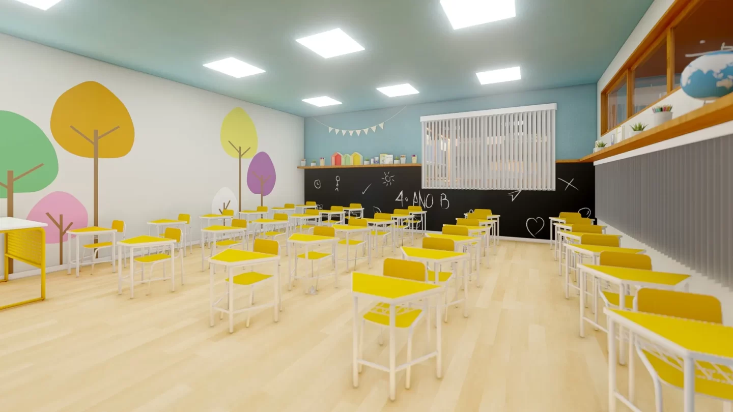A edificação é composta por térreo, primeiro pavimento e cobertura, totalizando 1.033,34m² de área construída. Os espaços foram organizados para garantir funcionalidade, acessibilidade e eficiência, abrigando setores de ensino, administração e serviços de forma harmônica.