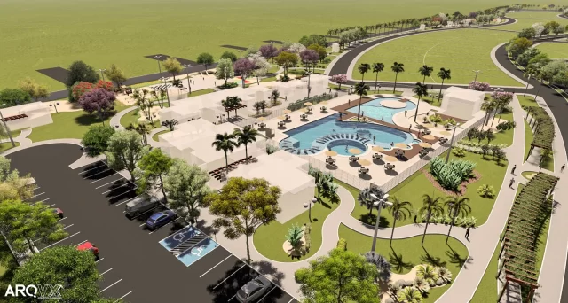 O empreendimento da Gleba 01 terá 12 quadras destinadas a loteamento de unidades residenciais com área entre 200,00 m² e 392,96 m² totalizando um total de área vendável de 83.523,38 m² (58,51% da área da Gleba 01), áreas verdes internas e externas totalizando 31.090,25 m² (20,90% da Gleba 01)., dentre elas uma área externa de pecúnia com 2.980,66 m². A Gleba 02 terá: um loteamento com 5 quadras para loteamento de unidades residenciais com área entre 200,00 m² e 350,95 m² com uma área vendável de 34.626,16 m²; terá três lotes destinados a apartamentos residenciais multifamiliar com um total de 15 prédios, tendo com 8 pavimentos cada um, e 8 apartamentos por pavimento, totalizando área construída estimada de 60.651,60 m² (130,09% da área dos lotes), as áreas verdes totalizam 19.656,41 m² (12,56% da Gleba 02).